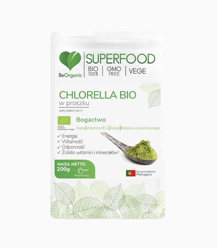 Chlorella zwyczajna (Chlorella Vulgaris) BIO w proszku 200 g SuperFood, beOrganic